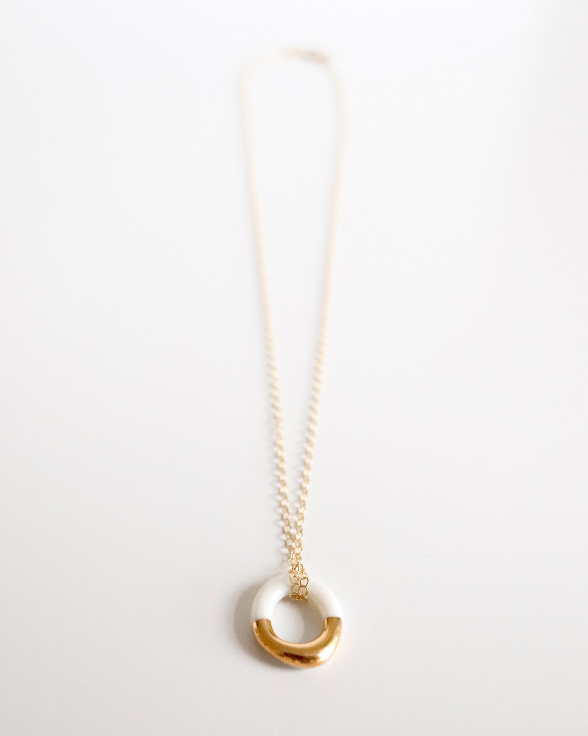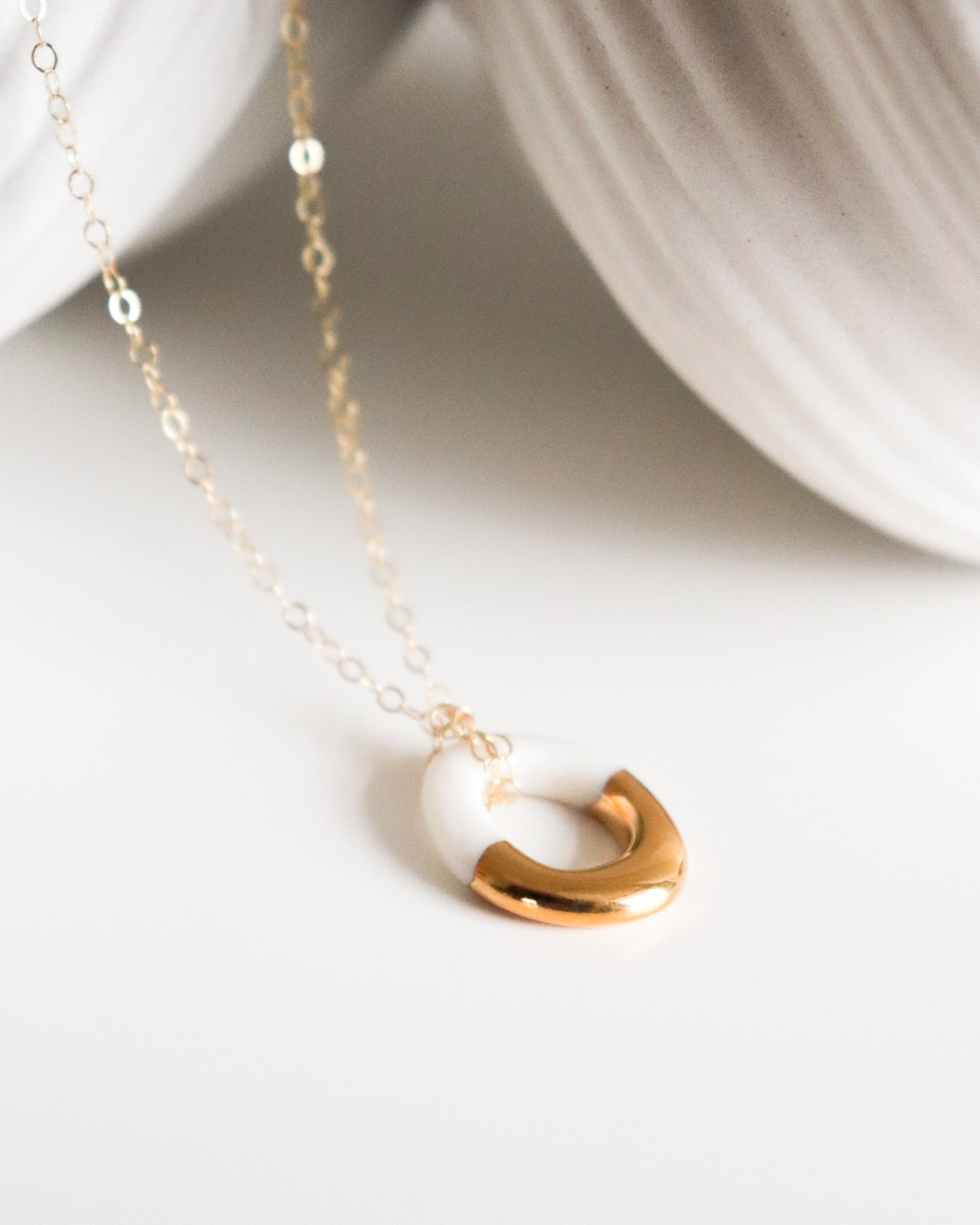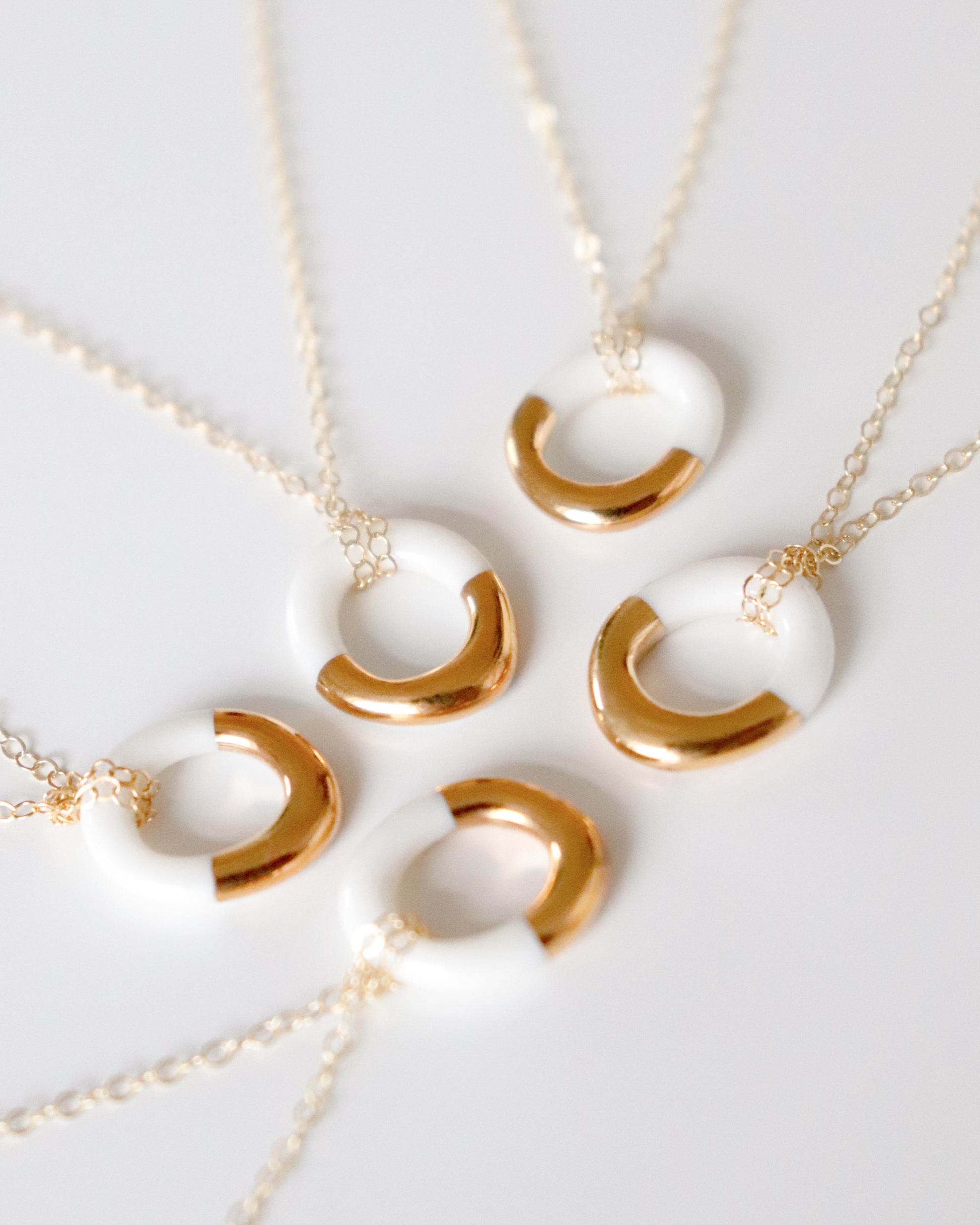 Zeltā mērktā porcelāna rotaslietu kolekcija ir patīkami viegla ar lakonisku dizainu.