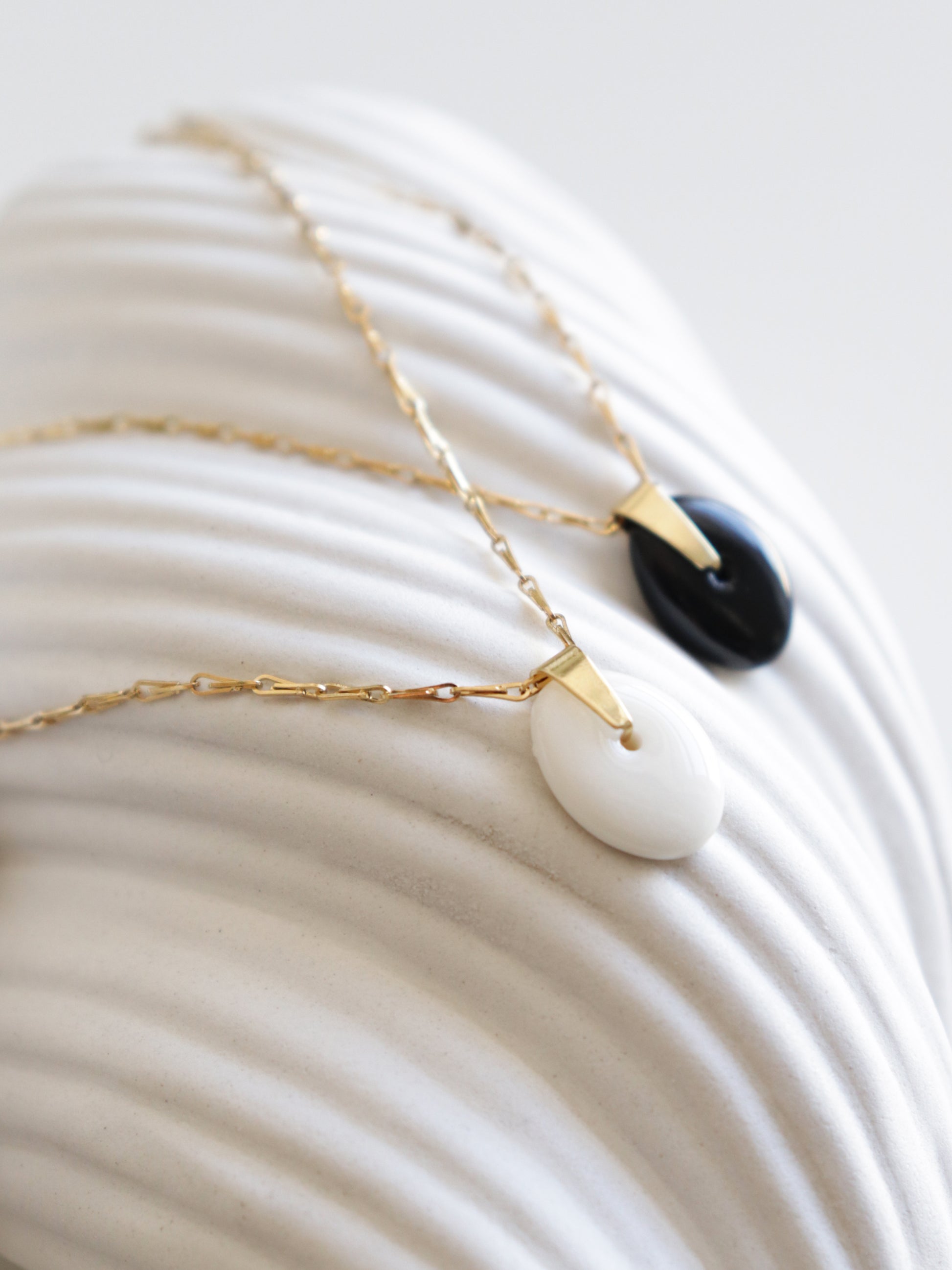 The minimalist collection has carefully selected materials that retain their shine over time. Stainless steel necklace chains are 100% waterproof and made to be worn both daily and for a special evening out.
