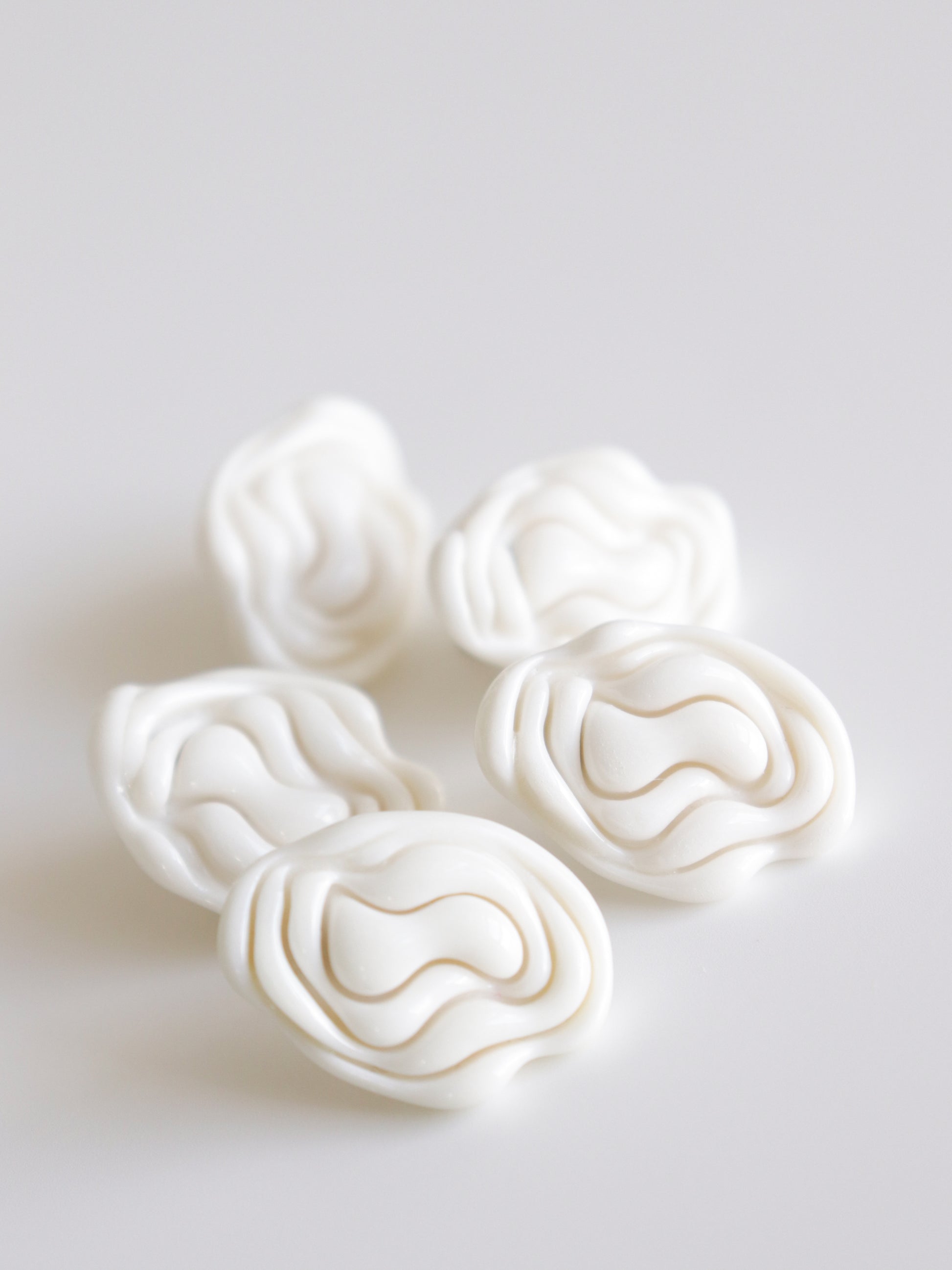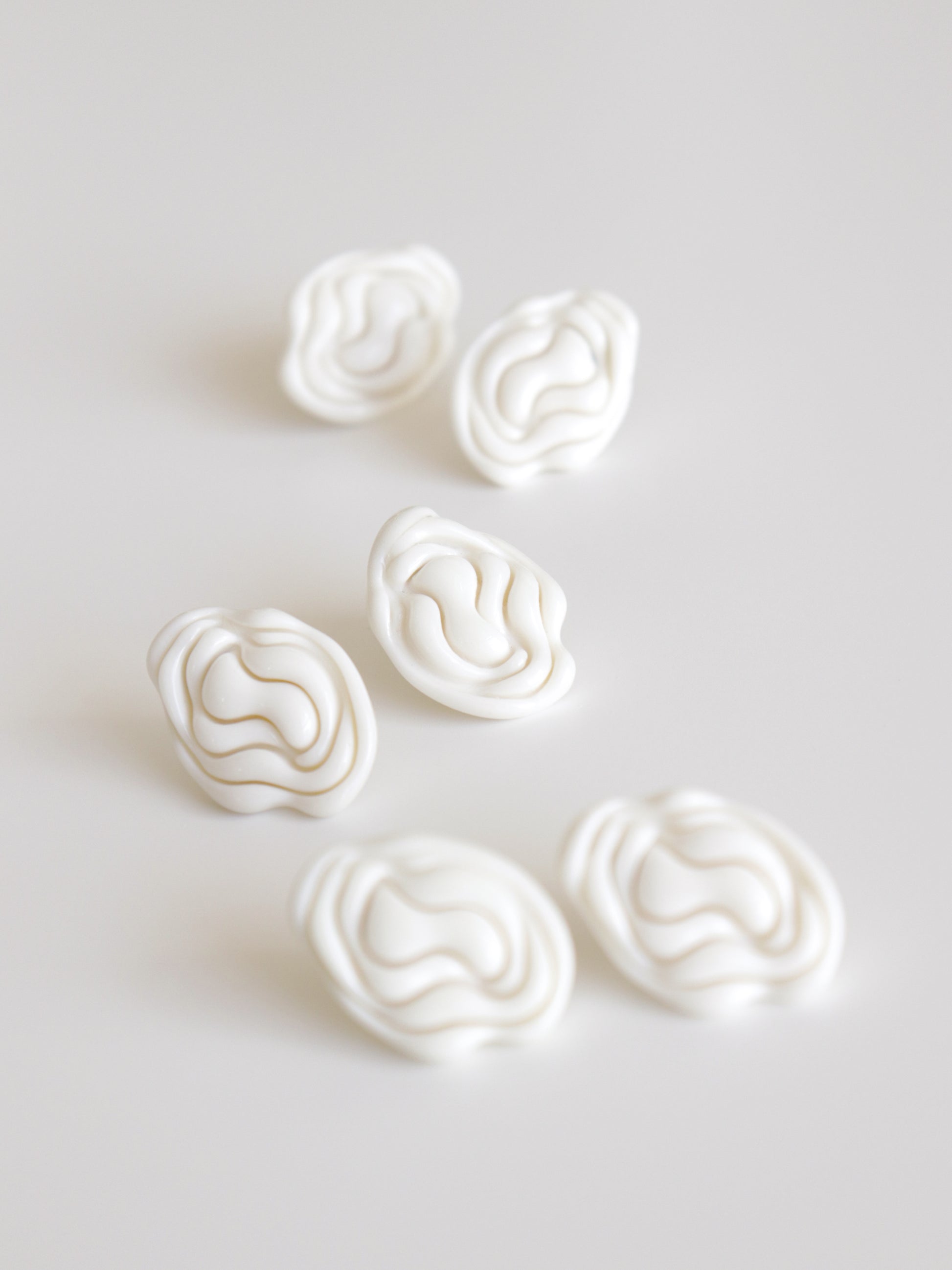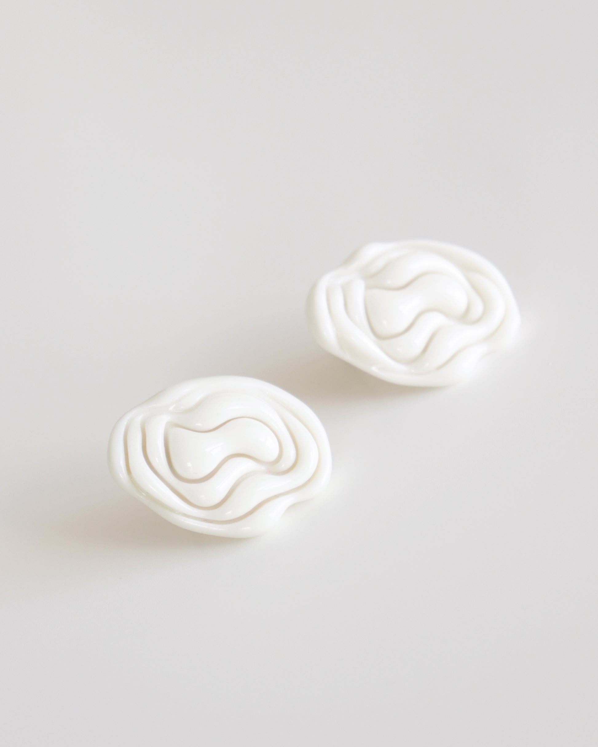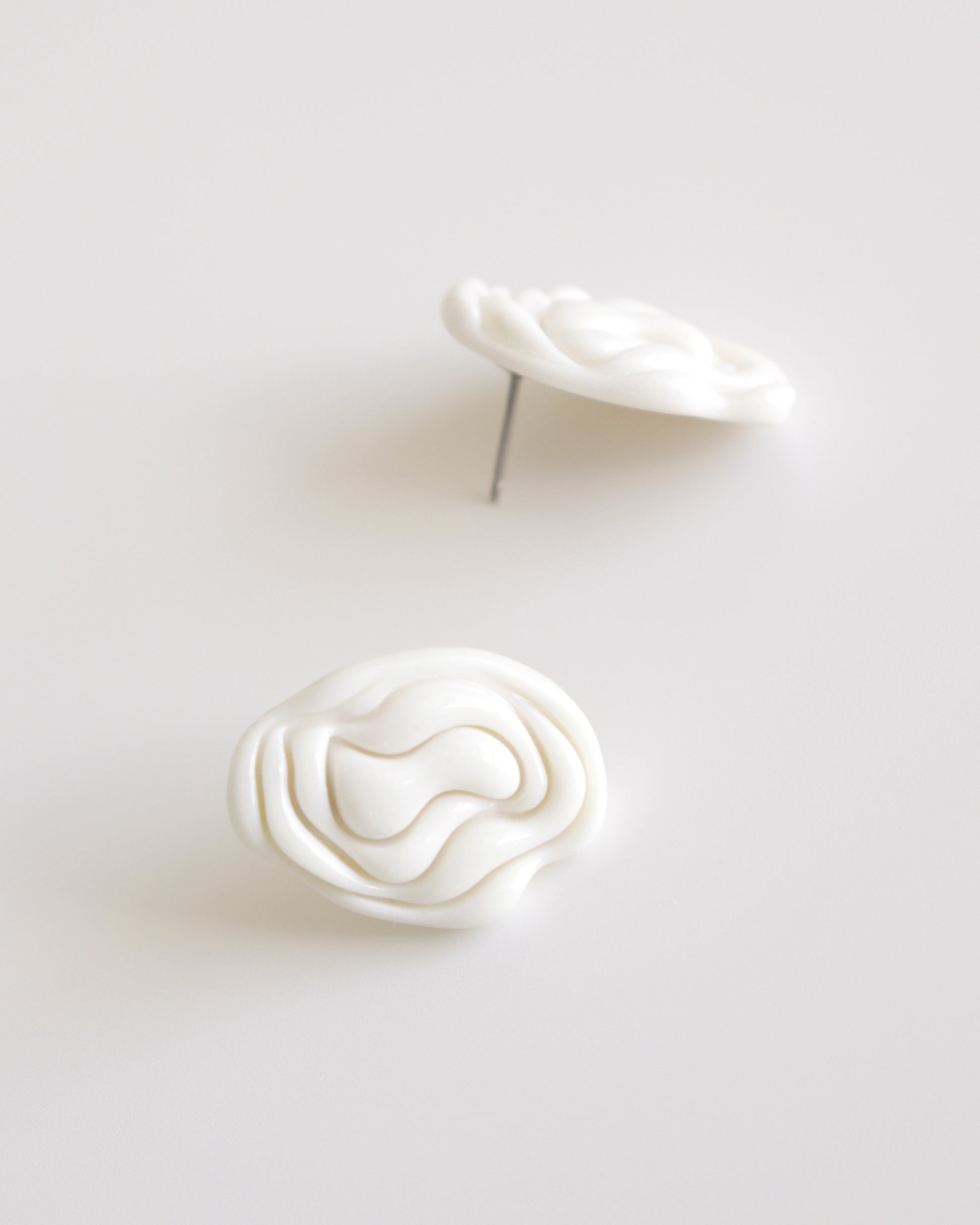 Porcelain stud earrings that feature a striking sculptural shape with flowing, layered curves that give them a distinctive, abstract elegance. Designed as more than just accessories, each pair is a miniature work of art, capturing movement and form in a timeless, wearable way.