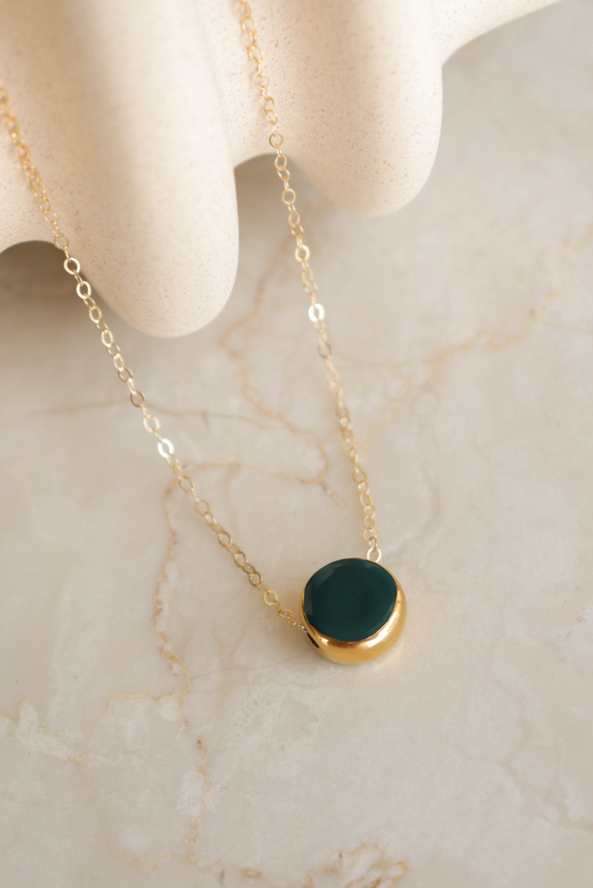 The minimalist collection has carefully selected materials that retain their shine over time. 14k gold-filled earring hooks and necklace chains are 100% waterproof and made to be worn both daily and for a special evening out. Stud earrings are finished with hypoallergenic 925 sterling silver.